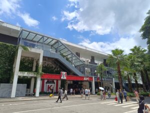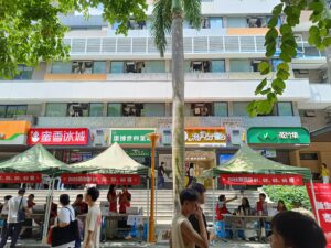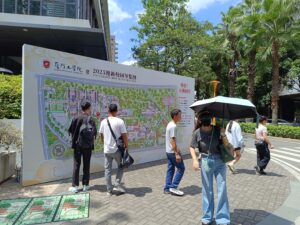 我也趁机在平时没什么人的主校门,找了正在社团招聘的学生拍了一张照片。