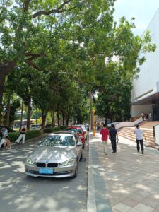 平日无车的校内道路上停满了送新生的车,有 当地的【闽】,也有【沪】,【皖】,【粤】远道而来的。
