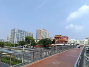 在过天桥回医院。